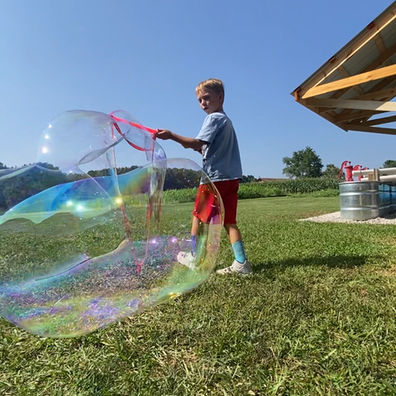 The haystack slide is a huge favorite of the littles, made of stacked hay bales, fun slides and a culvert pipe tunnel!